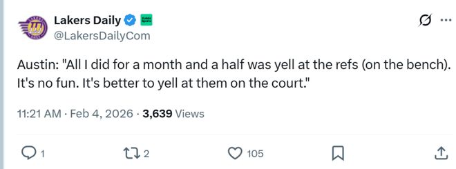 - 2026年02月04日 湖人大胜篮网结束八连客 老詹25+7 东契奇24+6+5 里夫斯15分