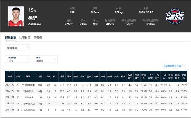 然后,他去了广州,打出了CBA最强国产中锋的水准。