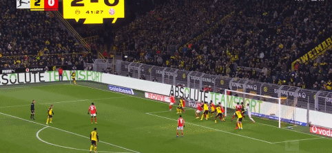 第42分钟,瑞尔森角球找到吉拉西头球梅开二度,多特3-0