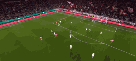 第9分钟,有点滑稽,凯恩门前头球攻门击中队友头部