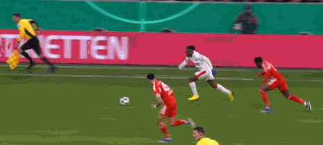 第90分钟,诺伊尔开大脚球,哈德伸腿挡出