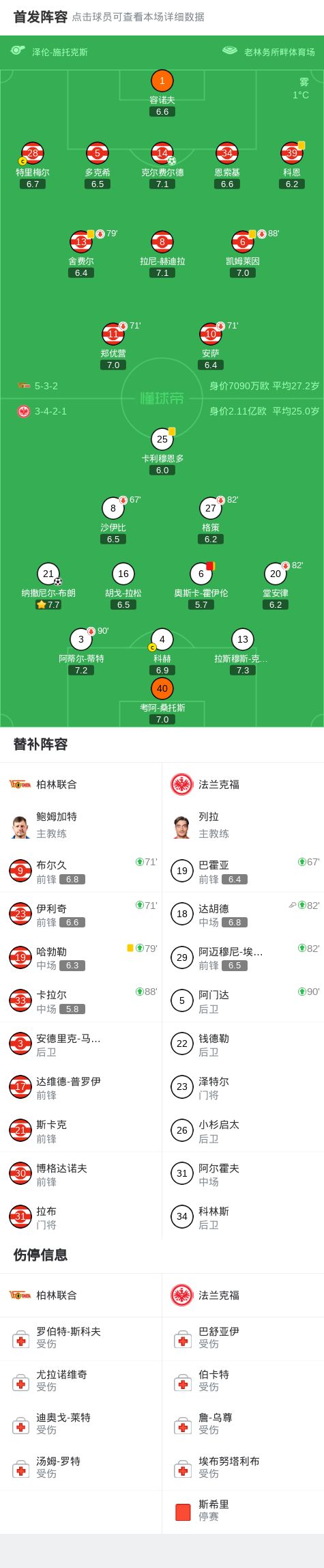 - 柏林联合vs法兰克福:郑优营、容诺夫首发,格策、堂安律出战